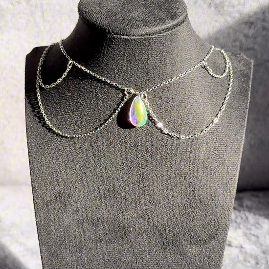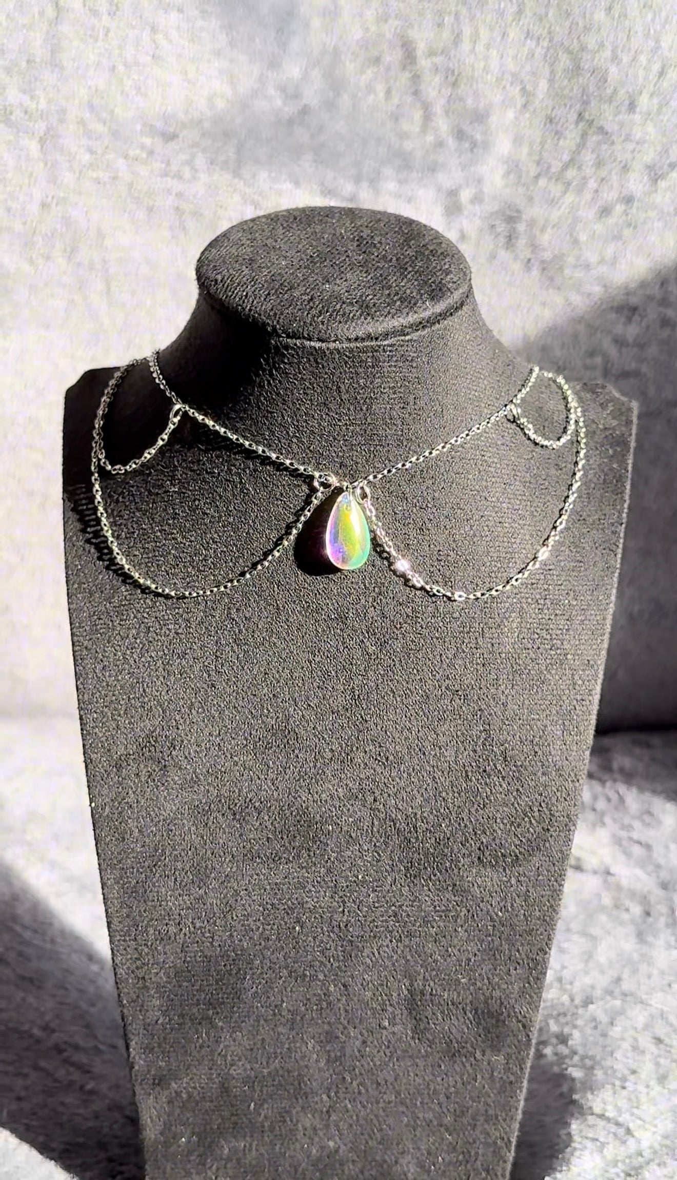 Le Collier Néréide ras-de-cou réglable, délicat et raffiné évoque la grâce des créatures marines mythologiques avec une touche de modernité minimaliste.